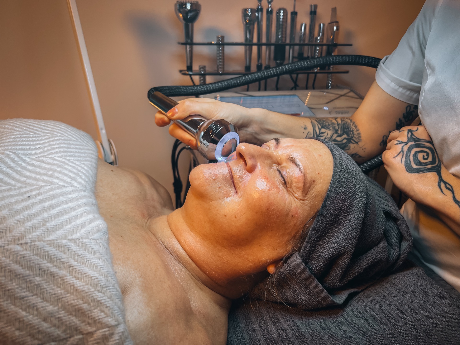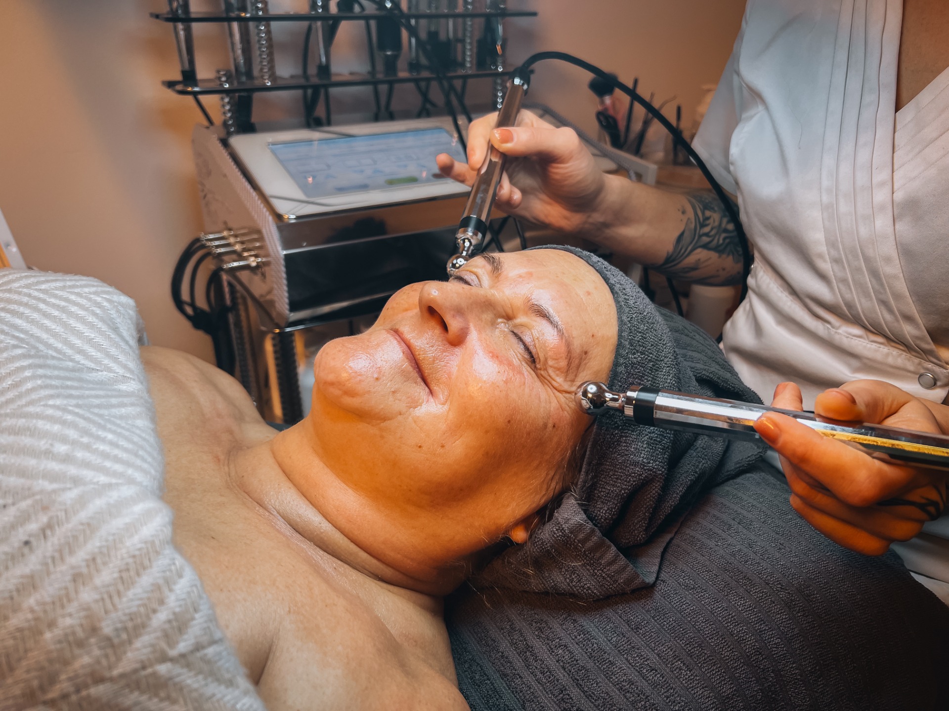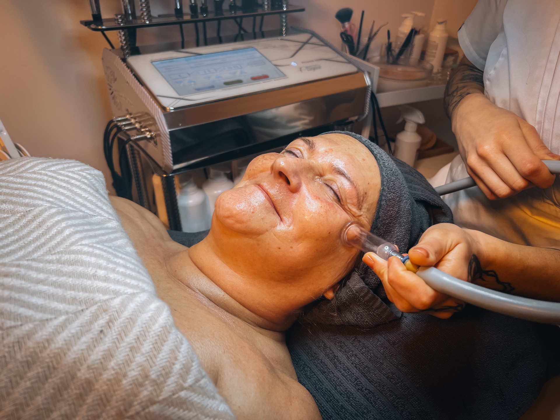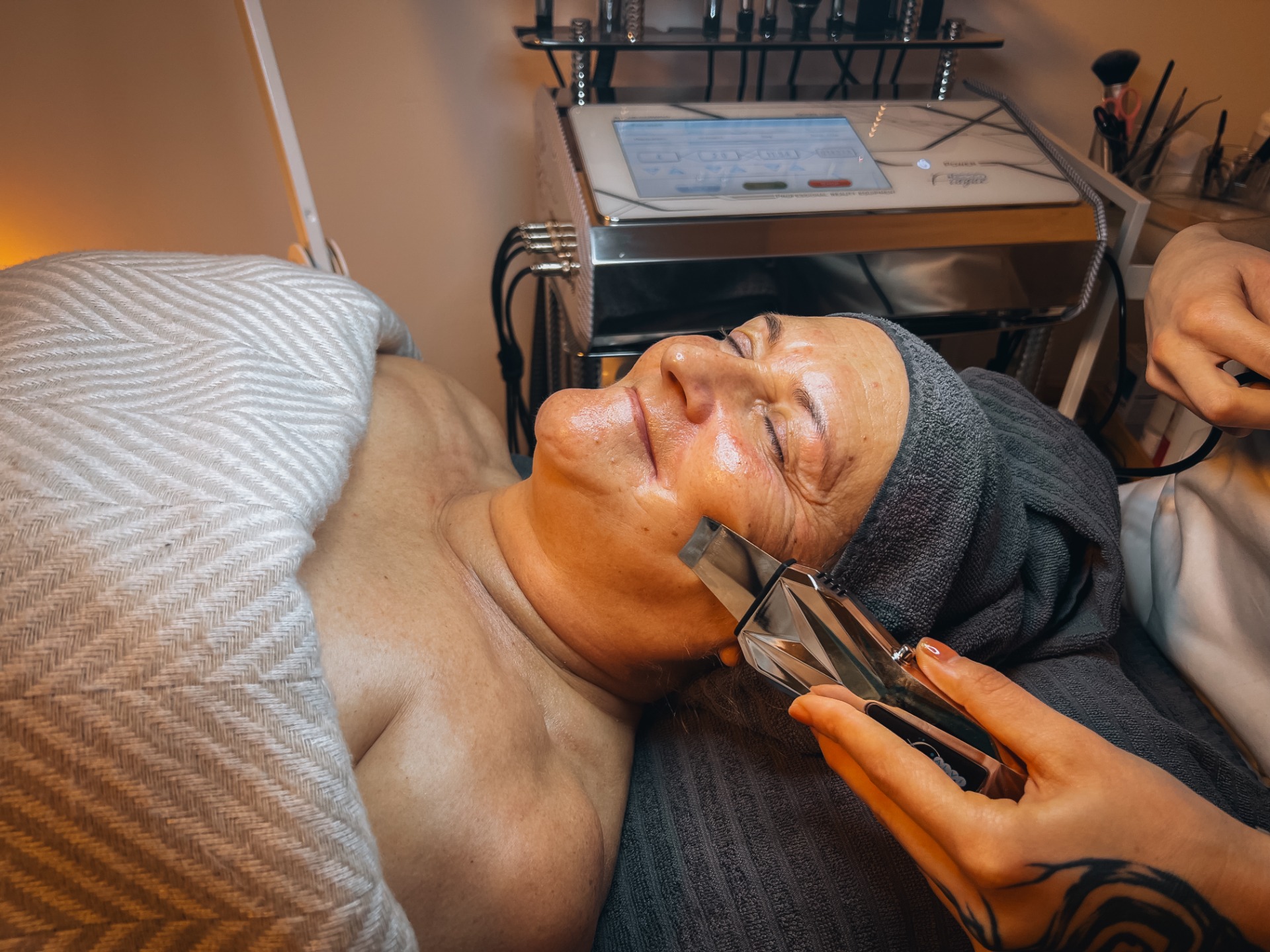 Ošetření trvá přibližně 60–90 minut podle typu pleti a zvoleného postupu. Již po první návštěvě téměř každá klientka vidí i cítí, že je pleť viditelně svěžejší a více rozzářená. Na naše ošetření docházejí klientky často před prací, focením, plesy a svatbami. I přesto že jde o hloubkové ošetření, nekonají se žádná začervenání či narušení pleti.